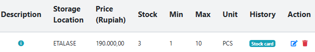 - Edit Sparepart: Temukan sparepart yang ingin dihapus, kemudian klik ikon