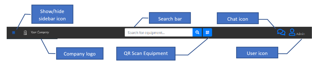 - Show/hide sidebar icon, digunakan untuk menampilkan atau menyembunyikan sidebar yang ada pada sebelah kiri halaman aplikasi.