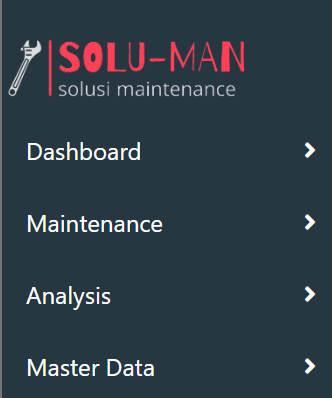 Side bar dibagi menjadi 4 bagian sesuai dengan fungsinya masing-masing yaitu Dashboard, Analysis, Maintenance dan Master Data.