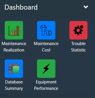 - Tombol Maintenance Realization, untuk menampilkan modul Dashboard yang berisi rangkuman data-data yang berkaitan dengan kegiatan maintenance serta realiasasinya.